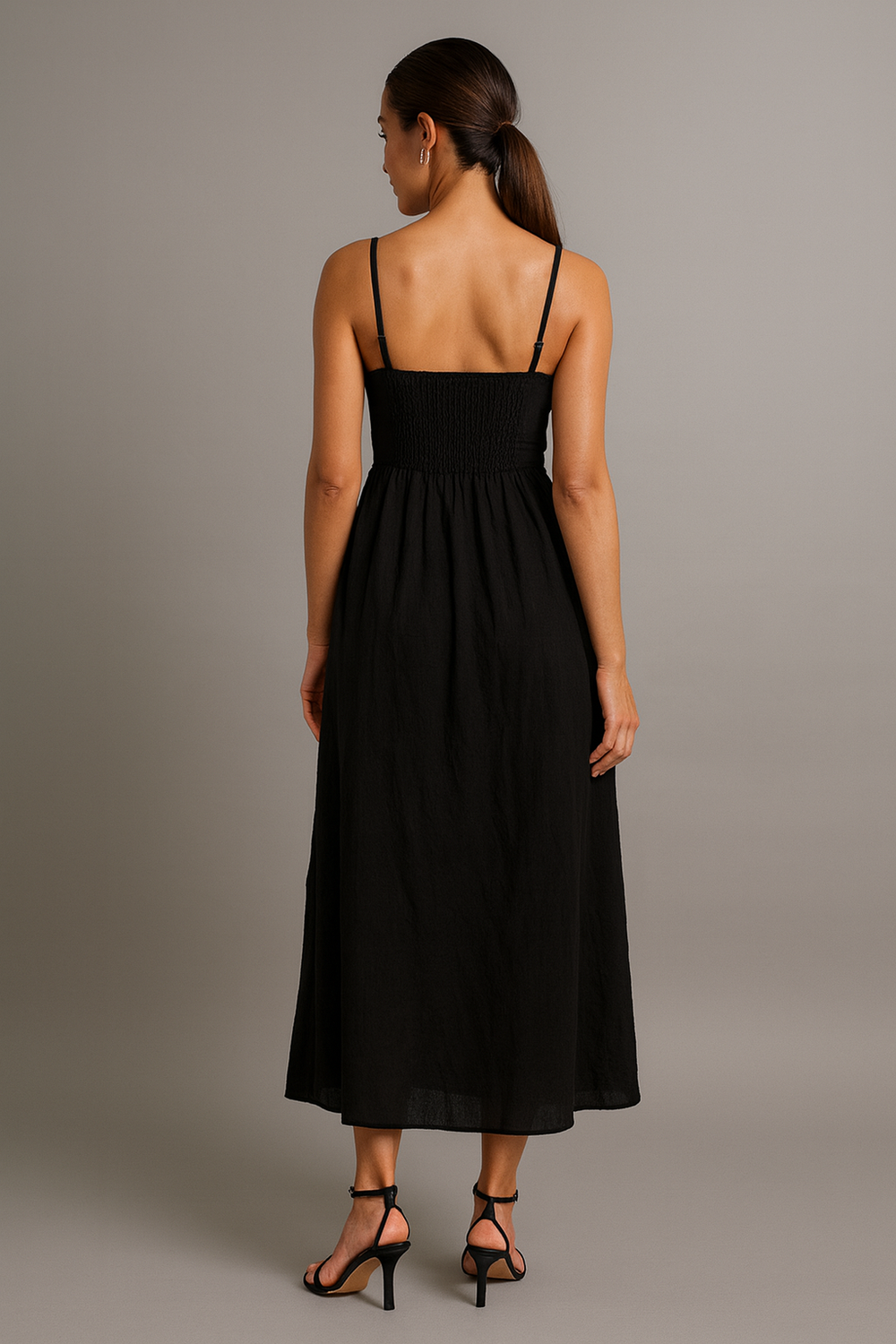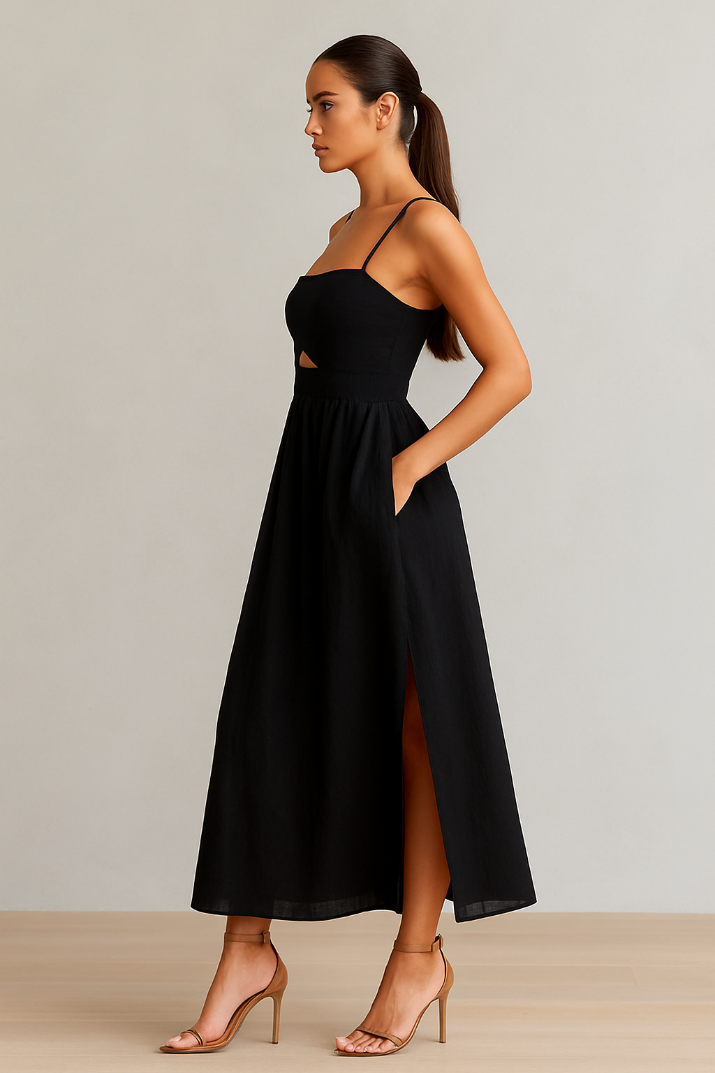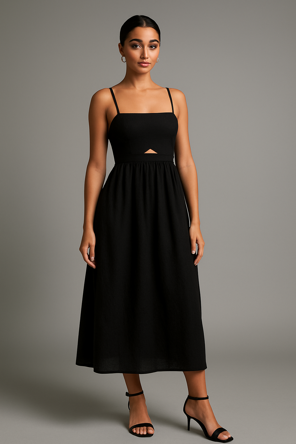 Crafted from whisper-soft, breathable cotton, this ankle-length silhouette drapes effortlessly, skimming the body in the most flattering way. Delicate straps and a refined hollow-out design add intrigue, while its fluid movement captures the light with every step. Whether you’re heading to a coastal brunch, a garden soirée, or a sunset cocktail, Marcelline™ ensures you look chic without ever trying too hard.