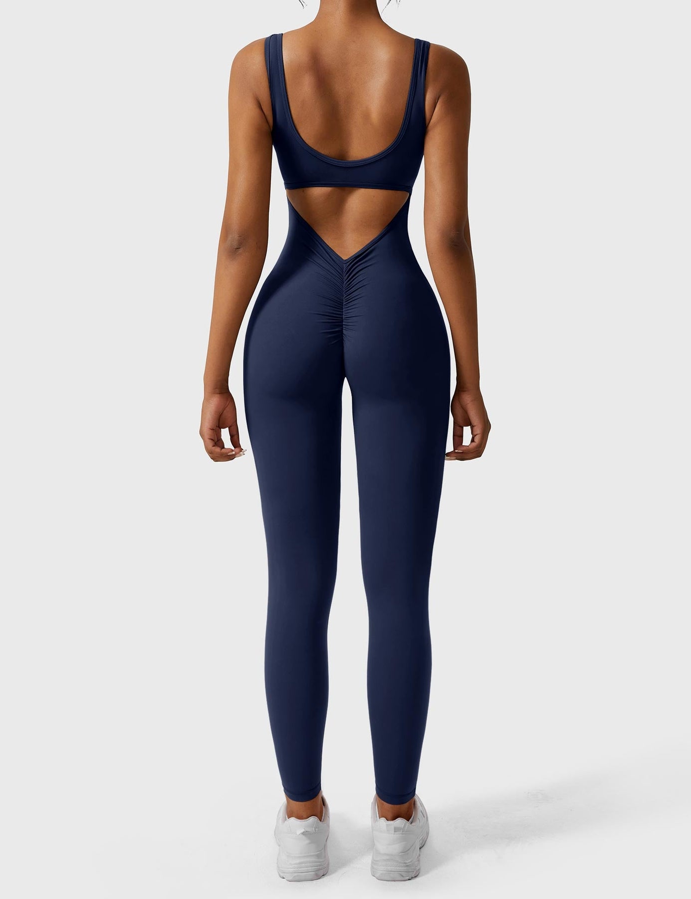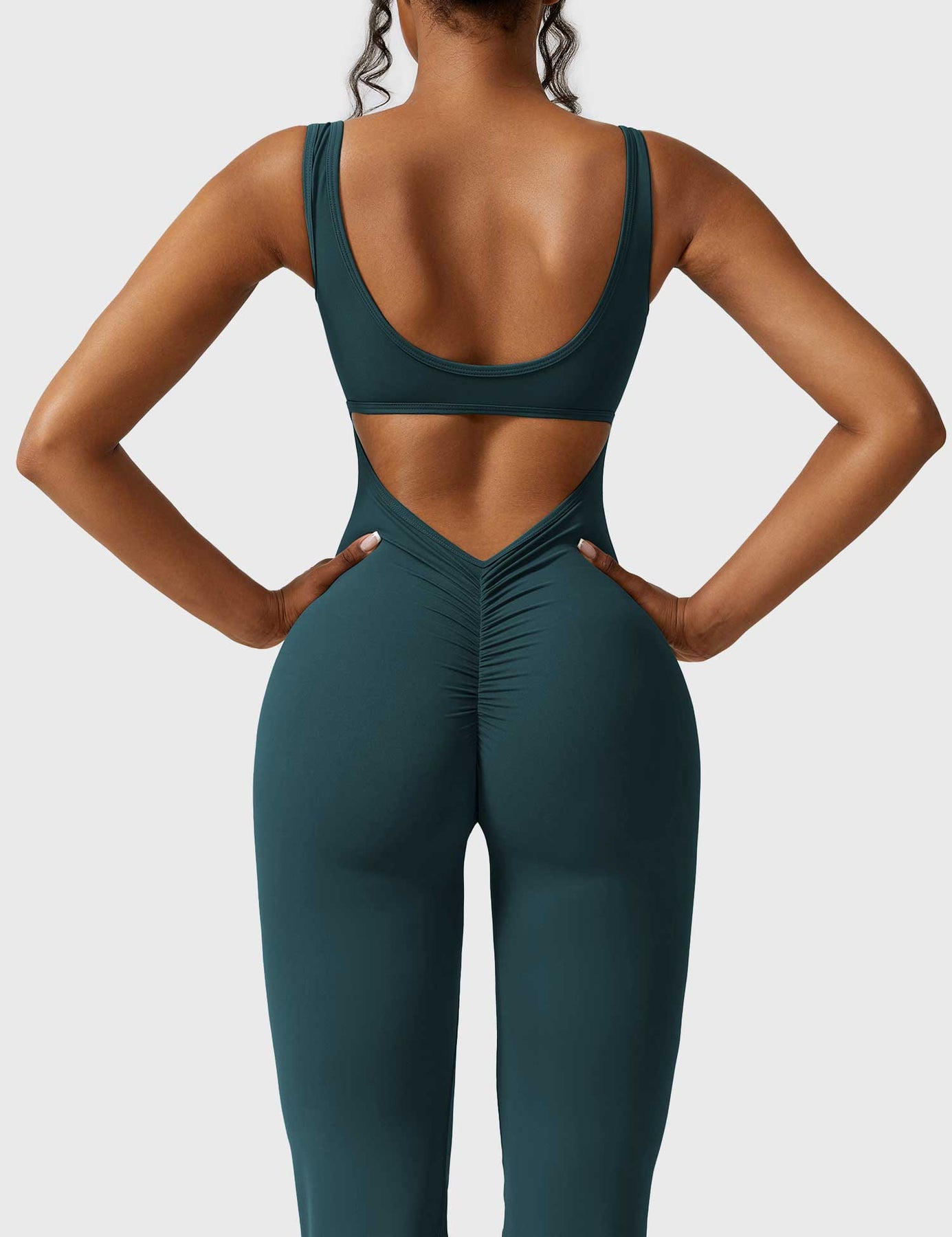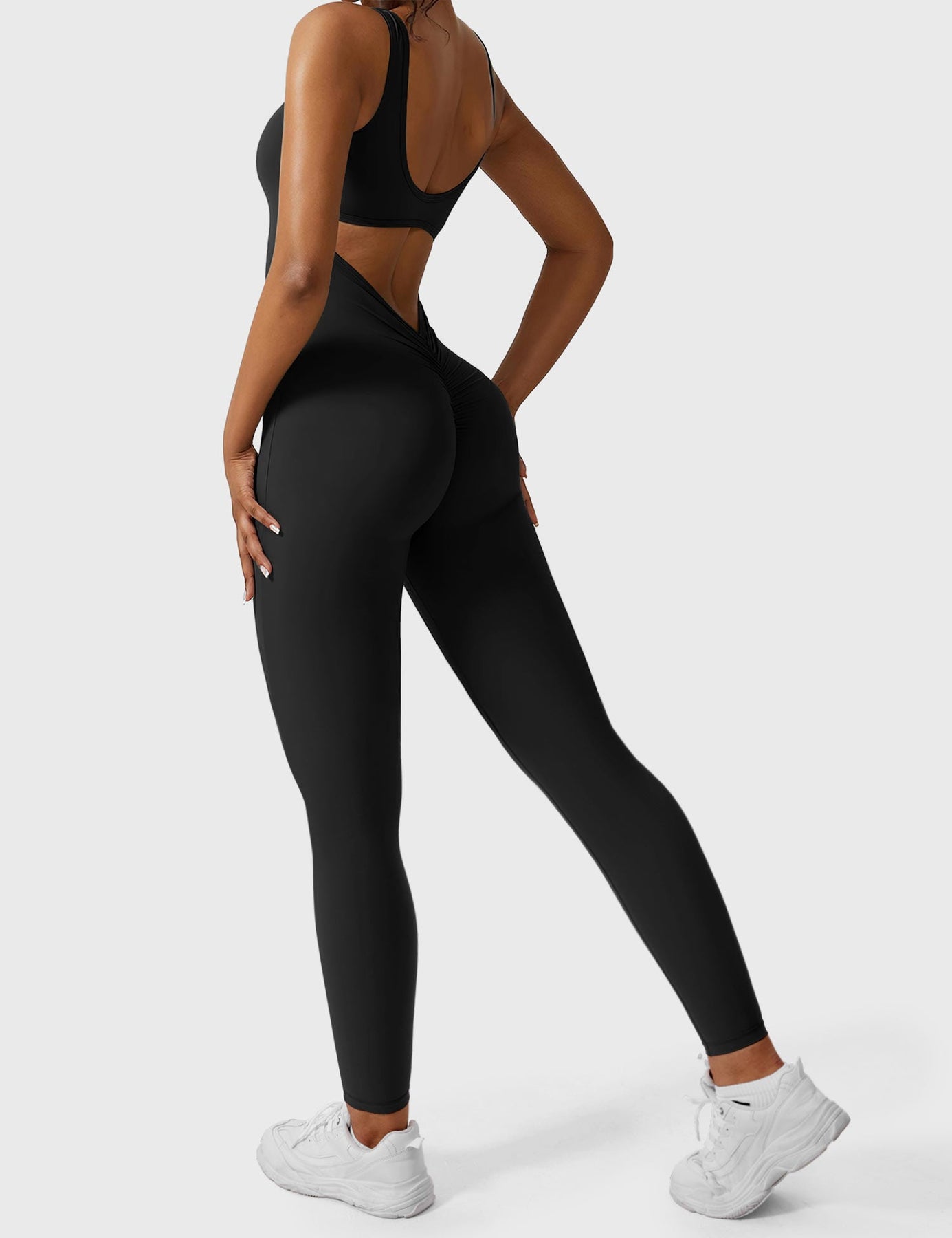 Our Lizvette V-Back Jumpsuit combines style and comfort. Crafted from soft, stretchy double-sided fleece, it ensures all-day comfort. The deep V-back and lifting ruffles enhance your curves, creating a flattering silhouette. Perfect for workouts or casual outings, this jumpsuit is ready to turn heads wherever you go!