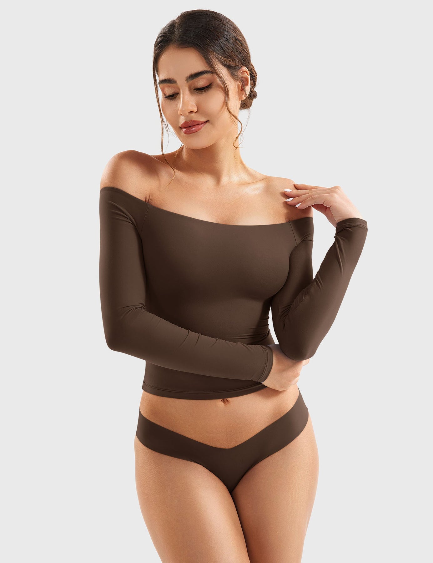 The Luzlie Top features a chic off-shoulder design perfect for Y2K style. Made from ultra-soft, double-lined fabric with four-way stretch, it feels like a second skin. Ideal for autumn and winter, this lightweight top elevates any outfit effortlessly.
